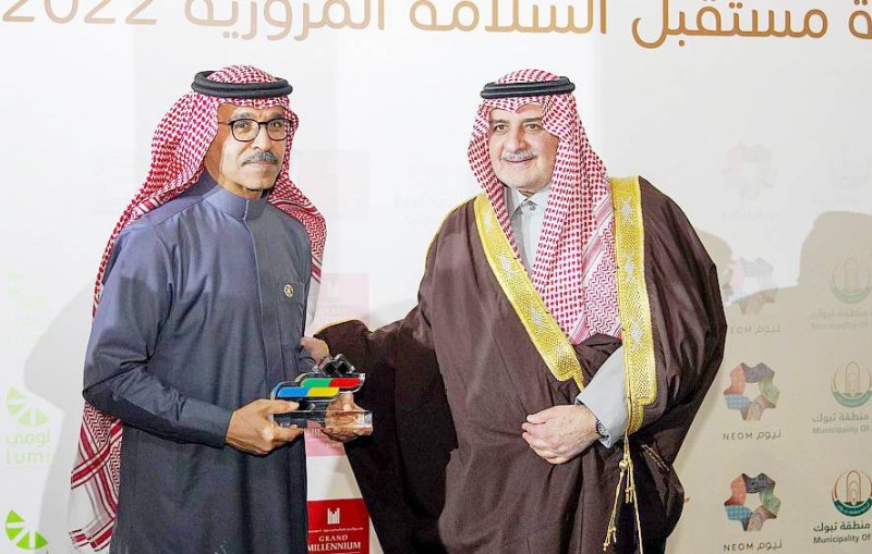 جاء ذلك، خلال تدشينه أمس فعالية «مستقبل السلامة المرورية 2022»، وإستراتيجية السلامة المرورية بالمنطقة والمعرض المصاحب، ورعايته توقيع مذكرة تفاهم بين نيوم والمركز الوطني للسلامة والطرق وذلك بمقر المدينة الجامعية بمدينة تبوك.