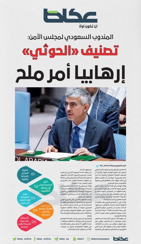المندوب السعودي لمجلس الأمن: تصنيف «الحوثي» إرهابيا أمر ملح Post author:abuabrar Post published:January 16, 2023 Post category:عاجل Post comments:0 Comments [ad_1] المندوب السعودي لمجلس الأمن: تصنيف «الحوثي» إرهابيا أمر ملح [ad_2] Source link You Might Also Like الإمارات تدعو الدول الحليفة إلى بناء درع يحمي من خطر الطائرات الم February 21, 2022 سيارة تقتحم مركزًا تجاريًّا بمكة.. ولا إصابات December 17, 2020 «يخزي العين» يا شربل – أخبار السعودية May 19, 2021 أسِرَّة تجوب الشوارع… احتفالات يوم الكسل العالمي في كولومبيا (فيديو وصور) August 22, 2022 مباحثات إماراتية ـ يمنية في أبوظبي ناقشت التعاون المشترك January 2, 2022 “دلتا كورونا” تنهش روسيا.. موسكو وسان بطرسبرج تسجلان وفيات قياسية June 28, 2021 Leave a Reply Cancel replyCommentEnter your name or username to comment Enter your email address to comment Enter your website URL (optional) Save my name, email, and website in this browser for the next time I comment.