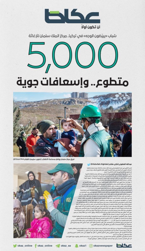 الستر الخضراء في كل مكان، وهي المكان المفضل والآمن للمتضررين، وأينما حلت هذه الستر تحل الراحة والاطمئنان، وسرعان ما يستقر متطوعو مركز الملك سلمان للإغاثة، بخيمتهم حتى تجد المحتاجين من السوريين يلجأون إليها وفي كل مرة تكون كلمة «أبشر» حاضر.. نعم أبشر في كل مكان، وعلى مدار أيام من العمل في غازي عنتاب لم نجد ما يضاهي عمل وهمة وحماسة متطوعي مركز الملك سلمان للإغاثة، كل شيء يمكن تأمينه، فالكارثة كبيرة، لكن الهمة السعودية عالية للتخفيف عن المتضررين. التقت «عكاظ» العديد من المتطوعين السعوديين، من بينهم محمد عبدالعزيز آل عتيق، وهو مسعف، ومتعاون مع فريق الهلال الأحمر السعودي في مركز الملك سلمان، محمد كان مسروراً بهذه المهمة، والأكثر من ذلك حجم التعاون مع الفريق بالكامل، وقد أبدى استعداده للعمل من أجل إنقاذ ومساعدة أكبر قدر ممكن من الناس في تركيا. أما فهد عبدالله الراشد، متطوع إنقاذ وإسعاف ضمن مركز الملك سلمان، فهو يرى الفخر والاعتزاز في هذه المهمة، وهو يقدم المساعدات لإخوته الأتراك، كما يقول. فيما كانت التجربة الأولى لفوزي البرداد، وهو متخصص بحث وإنقاذ، متطوع في مركز الملك سلمان، ويشعر بإحساس لا مثيل له في تاريخ حياته، وهو يرى أنه قادر على الدعم والمساعدة.