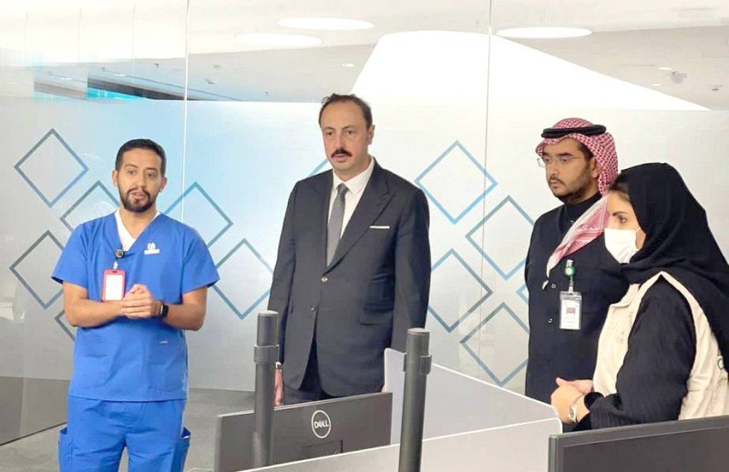 جاء ذلك خلال زيارته لمستشفى صحة الافتراضي ومركز القيادة والتحكم في وزارة الصحة بالرياض، اطلع خلالها على الخدمات الصحية الافتراضية التي بدأ المستشفى تقديمها عن بُعد للعوائل المتضررة في تركيا عبر جسر رقمي صحي يصل بالخدمات الصحية المميزة من خلال أطباء أصحاب تخصصات دقيقة.