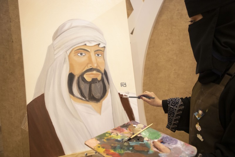 وتضمن المعرض عددًا من اللوحات التاريخية التي تضم تفاصيل ومشاهد حية عن تأسيس الدولة السعودية الأولى وعاصمتها الدرعية، ورصدًا تاريخيًا لأبرز أئمة وملوك الدولة السعودية، والمعالم التاريخية والتضاريس الجغرافية والأوضاع الاجتماعية والاقتصادية والثقافية التي عايشها الآباء والأجداد، وبعضًا من الأعمال الفنية والمنسوجات التراثية ذات الألوان الزاهيه الخاصة بالأزياء الشعبية لمناطق المملكة، والحرف والمشغولات اليدوية.