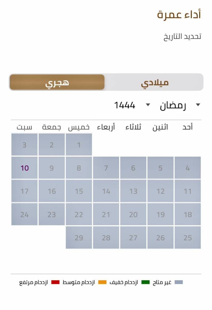 وظهرت جميع الأيام، بما فيها العشر الأواخر من الشهر الفضيل، باللون الرصاصي؛ الذي لا يظهر أية إمكانية لأي حجوزات قادمة.