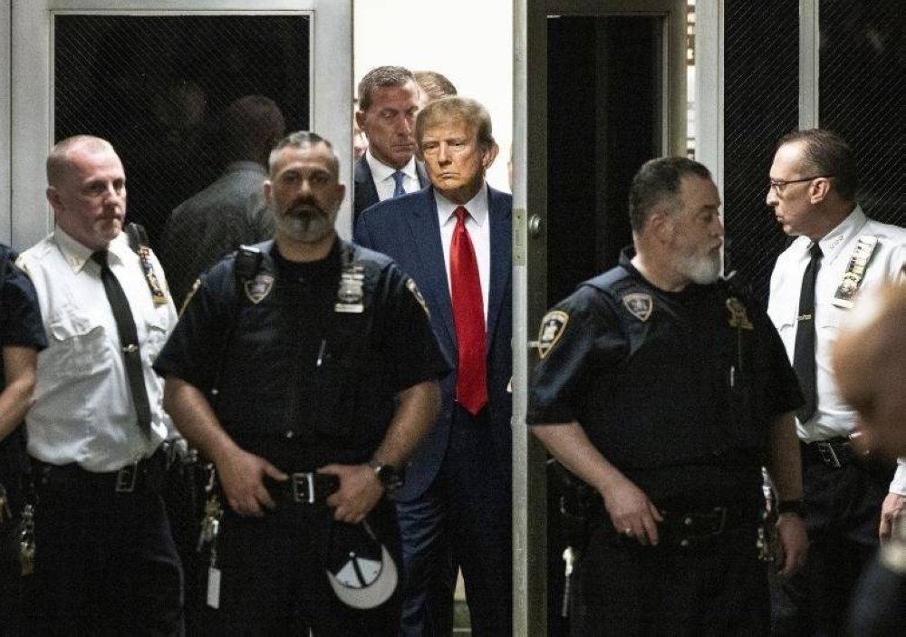 وكان ترمب قد احتجز في مكتب المدعي العام لمانهاتن، وأخذت بصماته قبل المثول أمام القاضي، وواجهته المحكمة بلائحة اتهام تتضمن 34 تهمة، لكنه رد عليها بأنه غير مذنب.