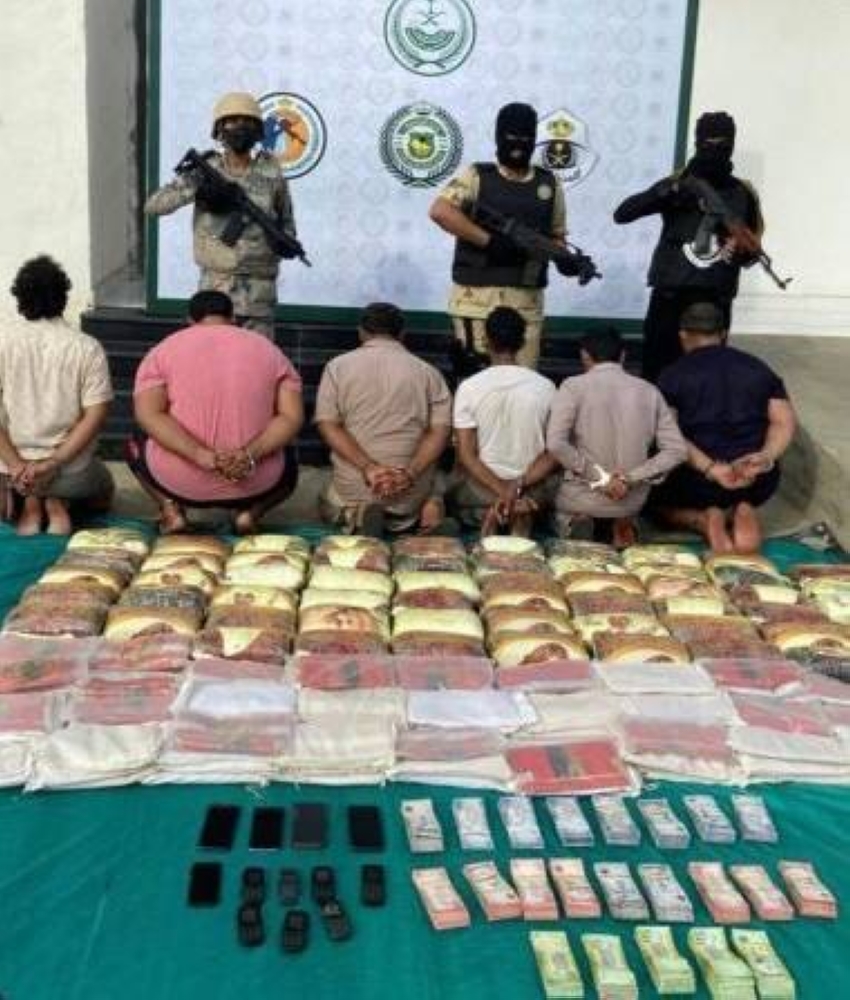 وتضافرت جهود إدارة التحريات والبحث الجنائي بمنطقة جازان، بالتنسيق مع المديرية العامة لحرس الحدود والمديرية العامة لمكافحة المخدرات، في القبض على (6) متهمين، وهم (3) مقيمين من الجنسية اليمنية، ومقيمان من الجنسية المصرية، ومواطن، لتهريبهم ونقلهم وتلقيهم المواد المخدرة، وضبط بحوزتهم مبلغ (470,950) ريالًا وهواتف متنقلة، وجرى إيقافهم واتخاذ الإجراءات النظامية بحقهم وإحالتهم إلى النيابة العامة.