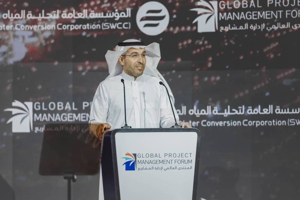 ومضى يقول «نضطلع جميعنا بمسؤولية كبيرة في مواكبة أهداف رؤية المملكة الطموحة، ولكم أن تتخيلوا حجم حاجتنا لإدارة المشاريع في كل نواحي أعمالنا في بناء المشاريع أو إدارة التشغيل والصيانة، وعلينا في هذا الصدد واجبات ومهمات لقيادة قطاع المياه في العالم بنهاية العام 2030، للوصول إلى طاقة إنتاجية ضخمة جداً من المياه المحلاة في نهاية العام 2023 عبر تحلية مياه البحر وتحلية المياه الجوفية تصل إلى 11.5 مليون متر مكعب»