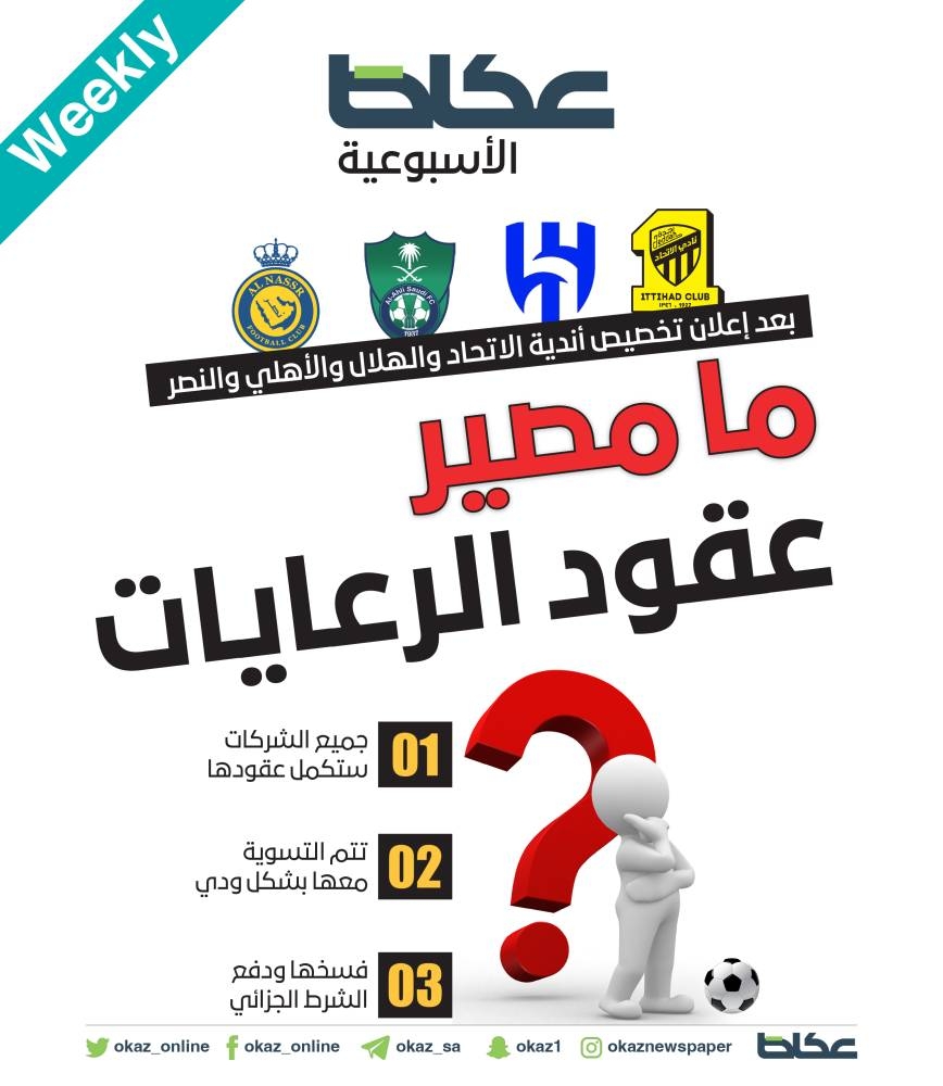 وبعد كل هذه التطورات وخصخصة الأندية يأتي السؤال عن دور الشركات التي سبق أن أبرمت عقوداً مع الأندية النصر والهلال والاتحاد والأهلي ومصيرها حول عقودها التي ما زالت جارية مع هذه الأندية، هل ستستمر العقود إلى نهايتها، أم سيتم تعويض هذه الشركات بمبالغ مالية تحفظ حقها؟