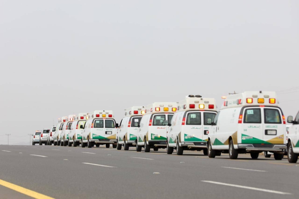 وأوضحت الوزارة أن القافلة تضم أسطولاً متكاملاً مكوناً من 16 سيارة إسعاف مزودة بجميع التجهيزات الطبية المتكاملة، مع تواجد فريق طبي متخصص مكون من 83 ممارساً متخصصاً (أطباء وتمريض ومسعفين) إلى جانب 4 سيارات إسعاف متمركزة على طريق الهجرة بين المدينة المنورة ومكة المكرمة، وسيارتي إسعافات العناية المركزة إضافة إلى 5 إسعافات مساندة وكابينة أوكسجين متكاملة، وورشة إسعافات متنقلة وحافلة لنقل مرافقي المرضى.