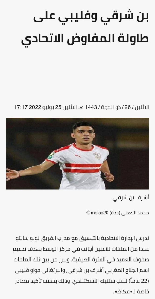 يذكر أن «عكاظ» انفردت قبل عام برغبة نونو سانتو في استقطاب ابن جلدته لتمثيل صفوف الفريق الاتحادي ولكن لم يكتب لها النجاح في الصيف الماضي قبل أن تعود الإدارة الاتحادية لفتح خط التفاوض من جديد مع الموهبة البرتغالية وتتوصل لاتفاق مع سلتيك الأسكتلندي لشراء عقده بصفقة تتجاوز الـ 100 مليون ريال.