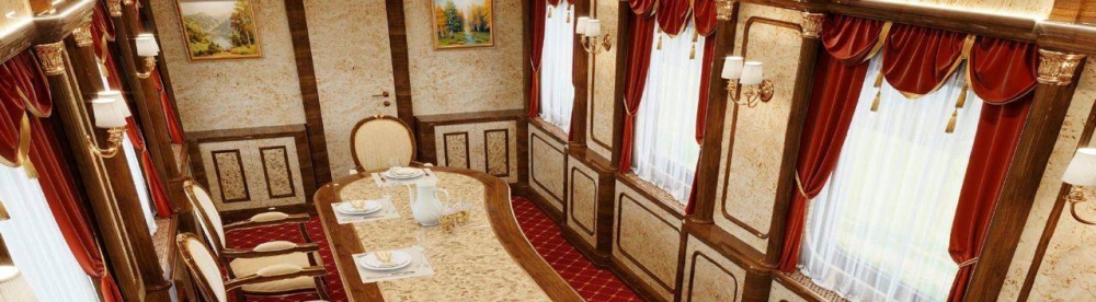 ويشير المركز إلى أن إحدى العربات تضم صالة رياضية فاخرة ومنتجعاً صحياً مصممين لبوتين.