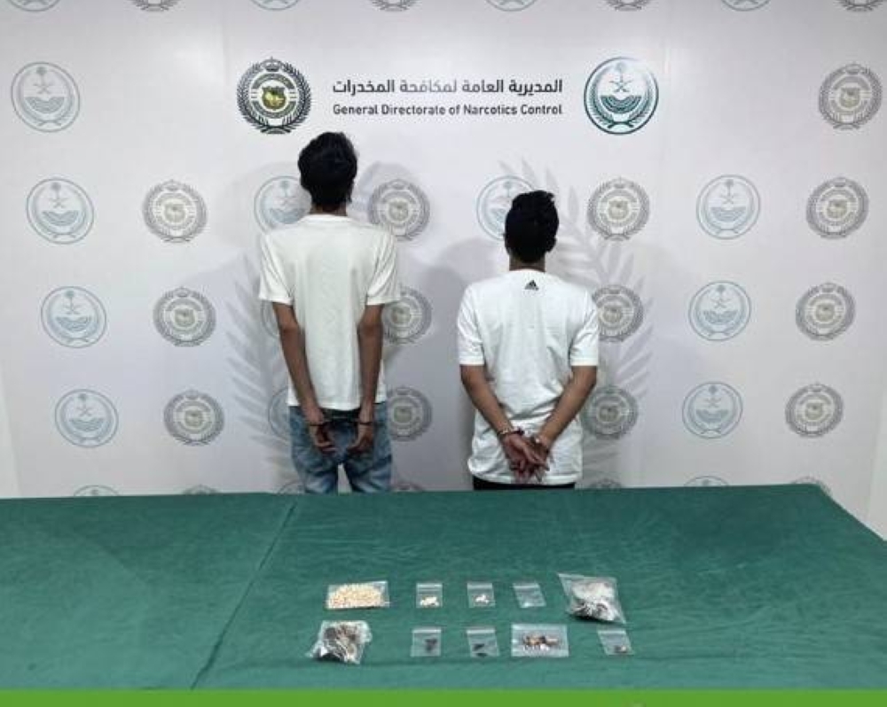 قبضت المديرية العامة لمكافحة المخدرات على مواطنين بمنطقة تبوك لترويجهما مادة الإمفيتامين المخدر ومادة الحشيش المخدر ومادة الميثامفيتامين المخدر (الشبو)، وجرى إيقافهما واتخاذ الإجراءات النظامية بحقهما، وإحالتهما إلى النيابة العامة.