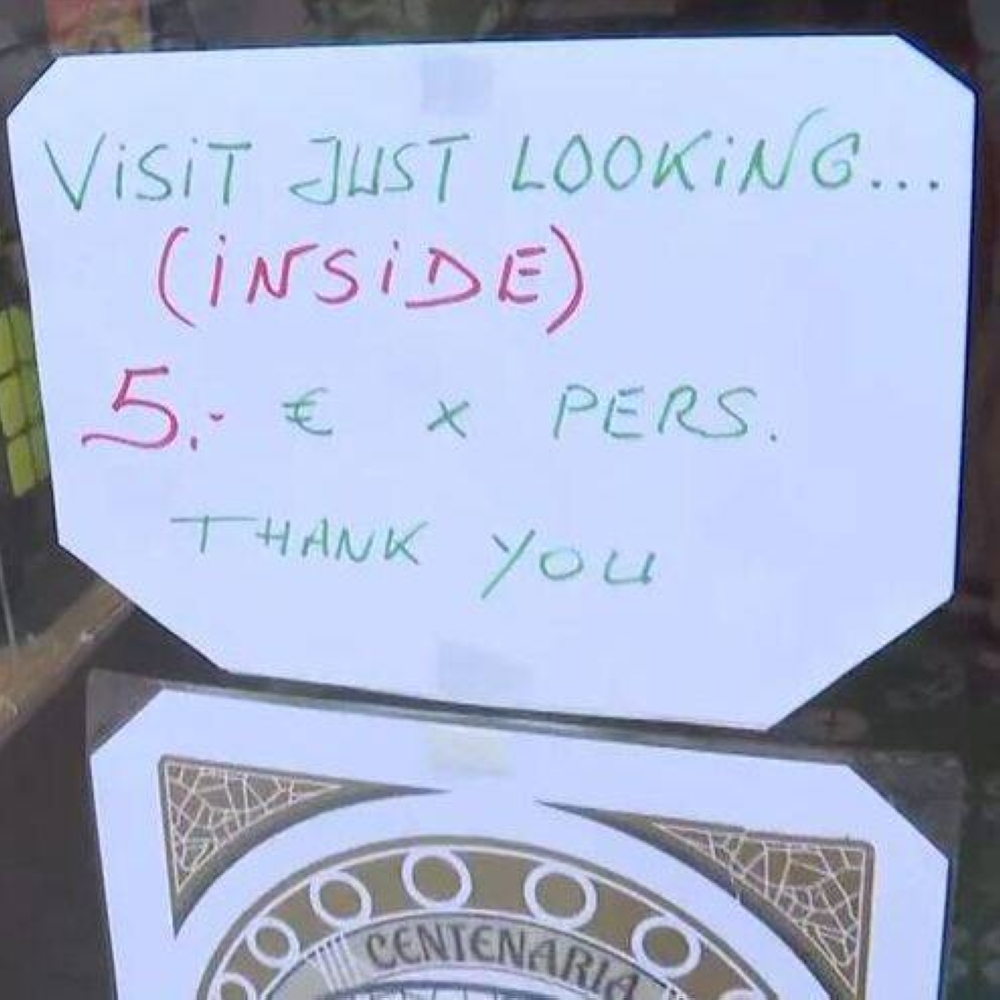 بعد أن ضاق أصحاب متجر بقالة تاريخي في برشلونة بتجول السياح في متجرهم العريق والاكتفاء بالفرجة والتصوير فقط، قرروا أن يتخذوا إجراءً غريباً من نوعه بإعلانهم فرض رسوم مالية على السياح الذي يكتفون بالفرجة فقط، ووضعوا لافتة بارزة على واجهة محلهم تؤكد أن رسوم الفرجة من الآن فصاعداً هي خمسة يورو (5.6 دولار) عن كل شخص يريد دخول المتجر للنظر فقط.