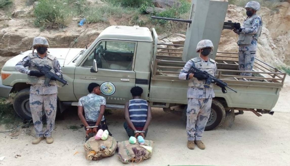قبضت الدوريات البرية لحرس الحدود في قطاع العارضة بمنطقة جازان على مخالفين لنظام أمن الحدود من الجنسية الإثيوبية، لتهريبهما (40) كيلوغراماً من نبات القات المخدر، وجرى استكمال الإجراءات النظامية الأولية بحقهما، وتسليمهما والمضبوطات لجهة الاختصاص.