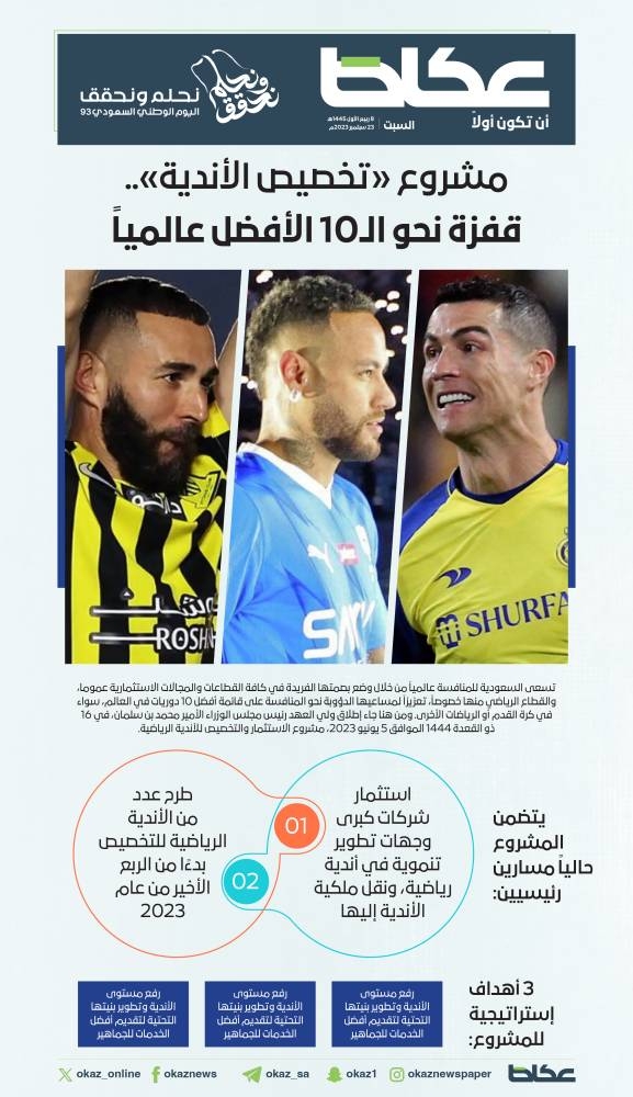 تسعى السعودية للمنافسة عالمياً من خلال وضع بصمتها الفريدة في كافة القطاعات والمجالات الاستثمارية عموما، والقطاع الرياضي منها خصوصاً، تعزيزاً لمساعيها الدؤوبة نحو المنافسة على قائمة أفضل 10 دوريات في العالم، سواء في كرة القدم أو الرياضات الأخرى. ومن هنا جاء إطلاق ولي العهد رئيس مجلس الوزراء الأمير محمد بن سلمان، في 16 ذو القعدة 1444 الموافق 5 يونيو 2023، مشروع الاستثمار والتخصيص للأندية الرياضية.