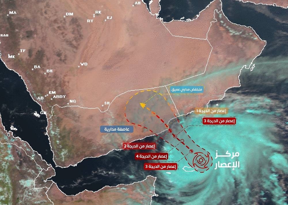 وابتداء من يوم غدٍ (الاثنين) حتى الأربعاء القادم، ستتأثر أجزاء من سلطنة عمان والجمهورية اليمنية بالحالة المدارية وفقاً للتالي: غداً (الاثنين) ستُصنّف بأنها إعصار مداري من الدرجة الثالثة بسرعة رياح بين 178 – 208 كيلومترات/ساعة عند الساعة 5:30 فجراً، ثم إعصار مداري من الدرجة الثانية وسرعة الرياح 154 – 177 كيلومتراً في الساعة حتى الساعة 5:30 عصراً.