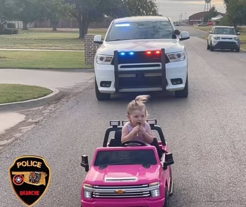 أوقفت الشرطة الأمريكية سائقة عمرها عامان تقود سيارة وردية بمدينة أوكارتشي في ولاية أوكلاهوما.