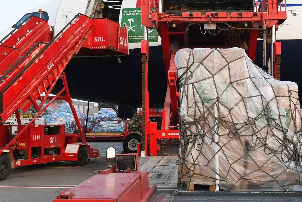 وتحمل الطائرة على متنها مساعدات إغاثية متنوعة، شملت مواد غذائية، وإيوائية، وطبية، تزن 35 طناً، وذلك ضمن الحملة الشعبية لإغاثة الشعب الفلسطيني الشقيق في قطاع غزة، والتي وجه بها خادم الحرمين الشريفين الملك سلمان بن عبدالعزيز آل سعود، وولي العهد رئيس مجلس الوزراء الأمير محمد بن سلمان بن عبدالعزيز.