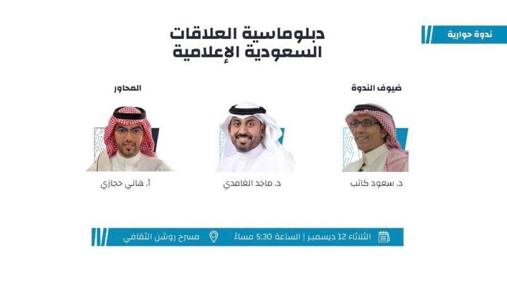 وكشف الحجازي أن الندوة تستعرض الدبلوماسية الإعلامية السعودية قوتها وتأثيرها واقعها وتطلعاتها، وكيف يمكن بناء صورة جديدة وحقيقية عن المملكة في ظل ما تشهده من قفزات متسارعة في شتى المجالات وفي ظل ماتشهده من دعم كبير لجذب الأنظار العالمية التي تثمر في تقوية الاقتصاد السعودي وتنويعة بعيداً عن النفط، وكيف يستثمر الإعلام القوة الناعمة في خدمة الدبلوماسية السعودية التي تساهم في بناء مكانة المملكة وقوتها وتطوير عمل وسائل الإعلام الحالية الموجهه للخارج.