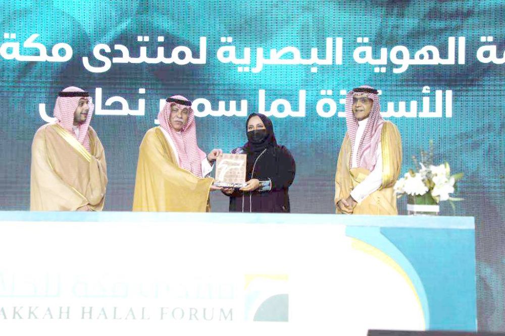 كرم وزير التجارة الدكتور ماجد القصبي ورئيس غرفة مكة المكرمة عبدالله بن صالح كامل، المصممة لمى بنت سمير نحاس على تصميمها الشعار والهوية البصرية الخاصة بمنتدى مكة للحلال، والذي يسلط الضوء على صناعات الحلال بمختلف أقسامها، من أطعمة ومشروبات وأدوية ومستحضرات تجميلية.