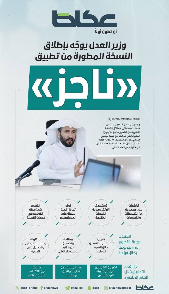 وزير العدل يوجّه بإطلاق النسخة المطورة من تطبيق «ناجز» Post author:abuabrar Post published:February 15, 2024 Post category:عاجل Post comments:0 Comments [ad_1] لقراءة الموضوع.. من هنا [ad_2] Source link You Might Also Like وزارة العدل تطلق البوابة القضائية العلمية الرقمية August 16, 2021 البرامج والنتائج التي تحققها وزارة الزراعة كانت بسواعد December 15, 2020 سعود الراشد.. اسم رنان في تاريخ الغناء الكويتي – أخبار السعودية March 6, 2022 5 أعراض لنقص فيتامين B5 – أخبار السعودية March 29, 2022 فائض حساب اليابان الجاري 2. 8 مليار دولار بيونيو August 10, 2021 أدونيس: الإرهاب يستند إلى النص وإلى الواقع التاريخي – أخبار السعودية April 19, 2023 Leave a Reply Cancel replyCommentEnter your name or username to comment Enter your email address to comment Enter your website URL (optional) Save my name, email, and website in this browser for the next time I comment.