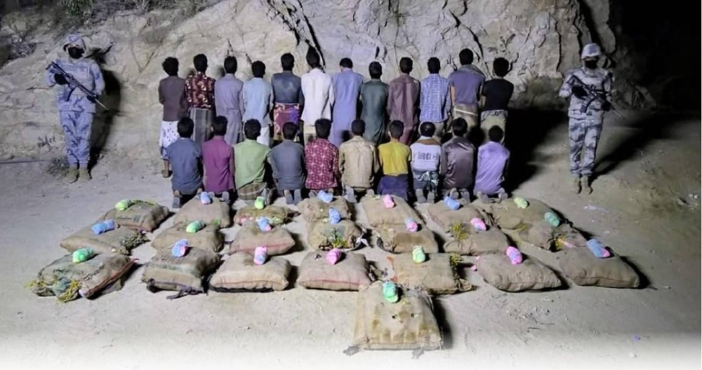 قبضت الدوريات البرية لحرس الحدود في قطاع العارضة بمنطقة جازان على 22 مخالفا لنظام أمن الحدود من الجنسية اليمنية، لتهريبهم 440 كيلوغراما من نبات القات المخدر، وجرى استكمال الإجراءات النظامية الأولية بحقهم، وتسليمهم والمضبوطات لجهة الاختصاص.